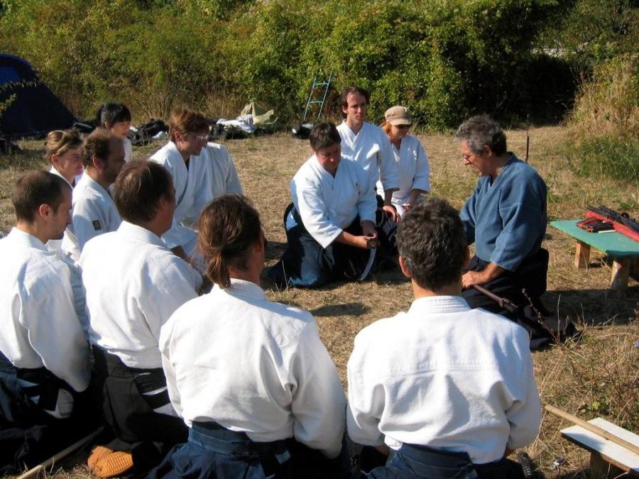 Anne Ducouret Sensei recoit des mains de Daniel Brunner Shihan une Lame vive du début XVIeme siecle.